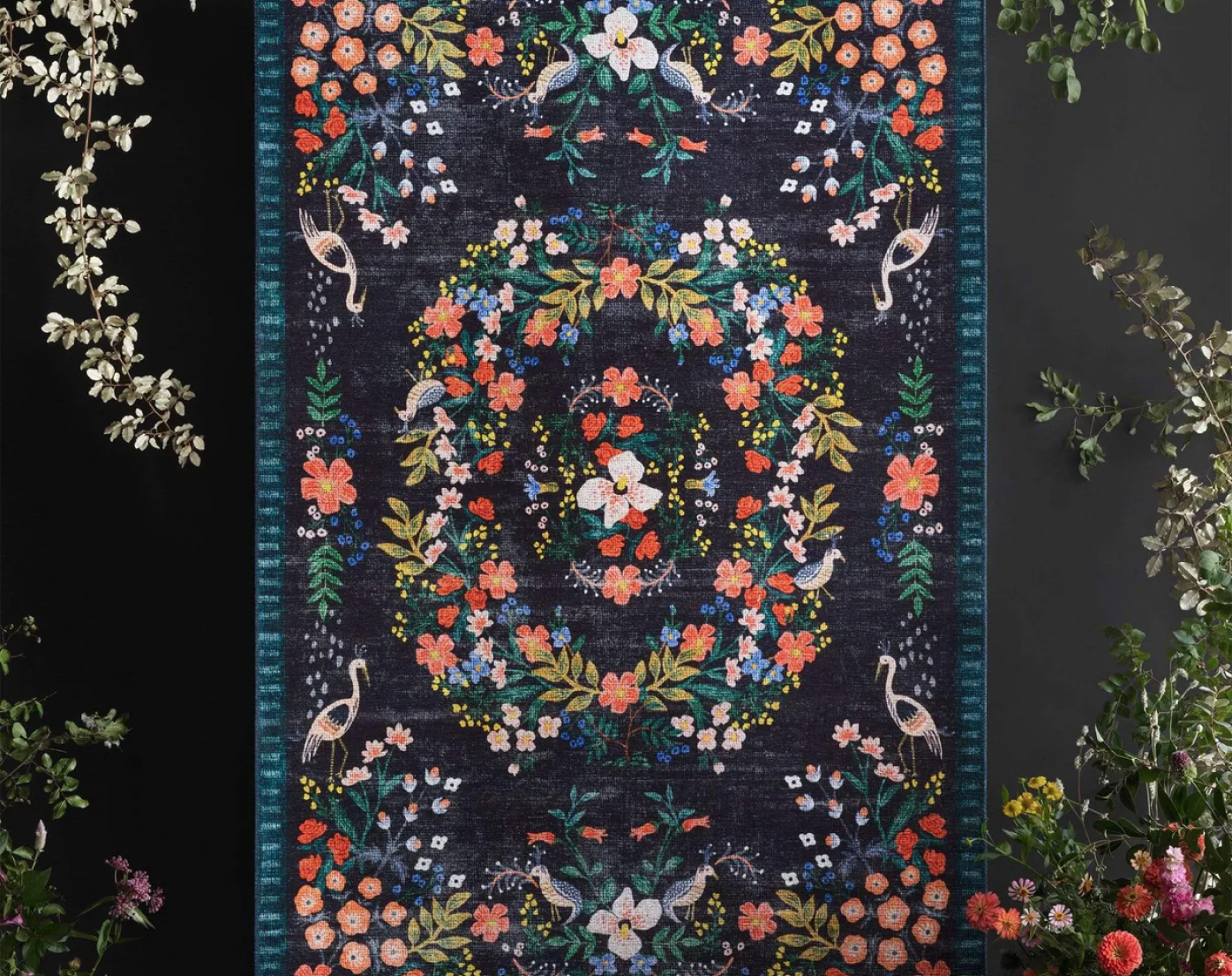 This rug photographs well but in person, it is much much lighter. The fibers are super synthetic and slick—you can easily slide across the rug. When I opened the rug, I thought I’d been sent the wrong color. Customer service through rifle paper was great. Customer service through Loloi was nice enough, but the only option they offered was for me to return the rug and pay for shipping myself. Between the hassle of getting this enormous rug to the place of shipment (it won’t fit in our cars) and then paying for the heavy rug to be sent back, it wasn’t worth the fuss. I’ve purchased two rifle paper Co. x Loloi rugs in the past and they’ve both been awesome, so I was willing to take a chance on this one. Unfortunately, the material and quality of this “power loomed” rug is so vastly different from what I had already received, I was super bummed.