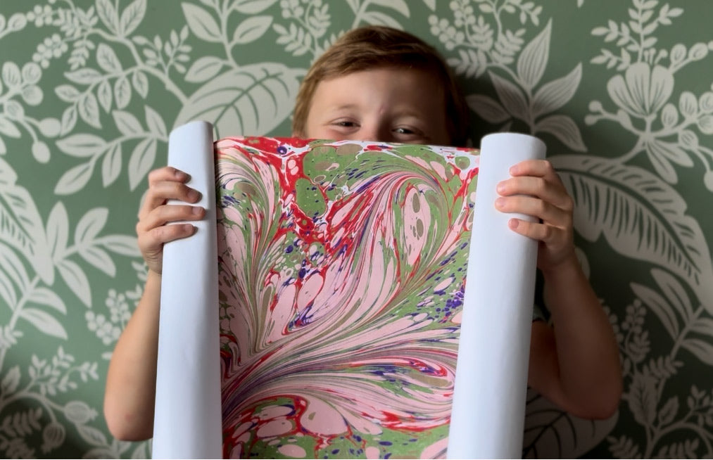 “A special day with my family turned into an unexpected moment of inspiration for a new print for Rifle Paper Co. My youngest son Louis made a beautiful marbled paper in Florence and I couldn’t help but turn it into a few special products to remember our trip together.”