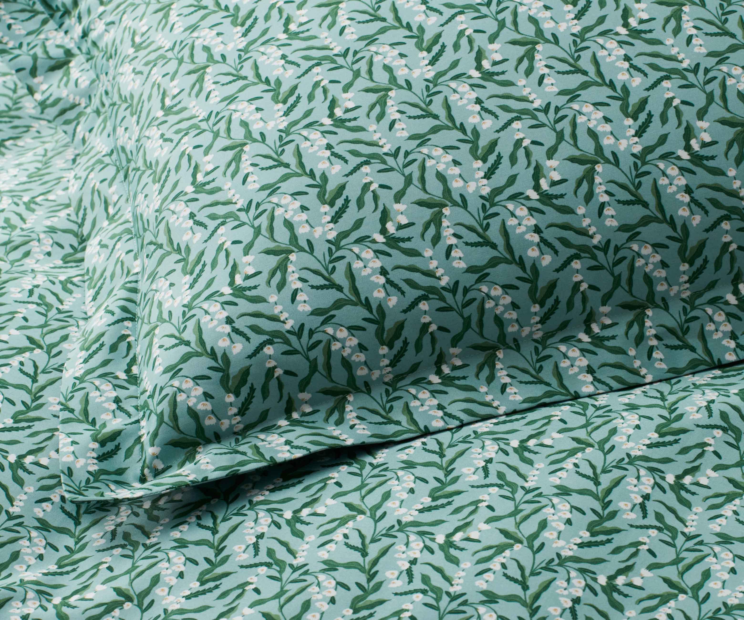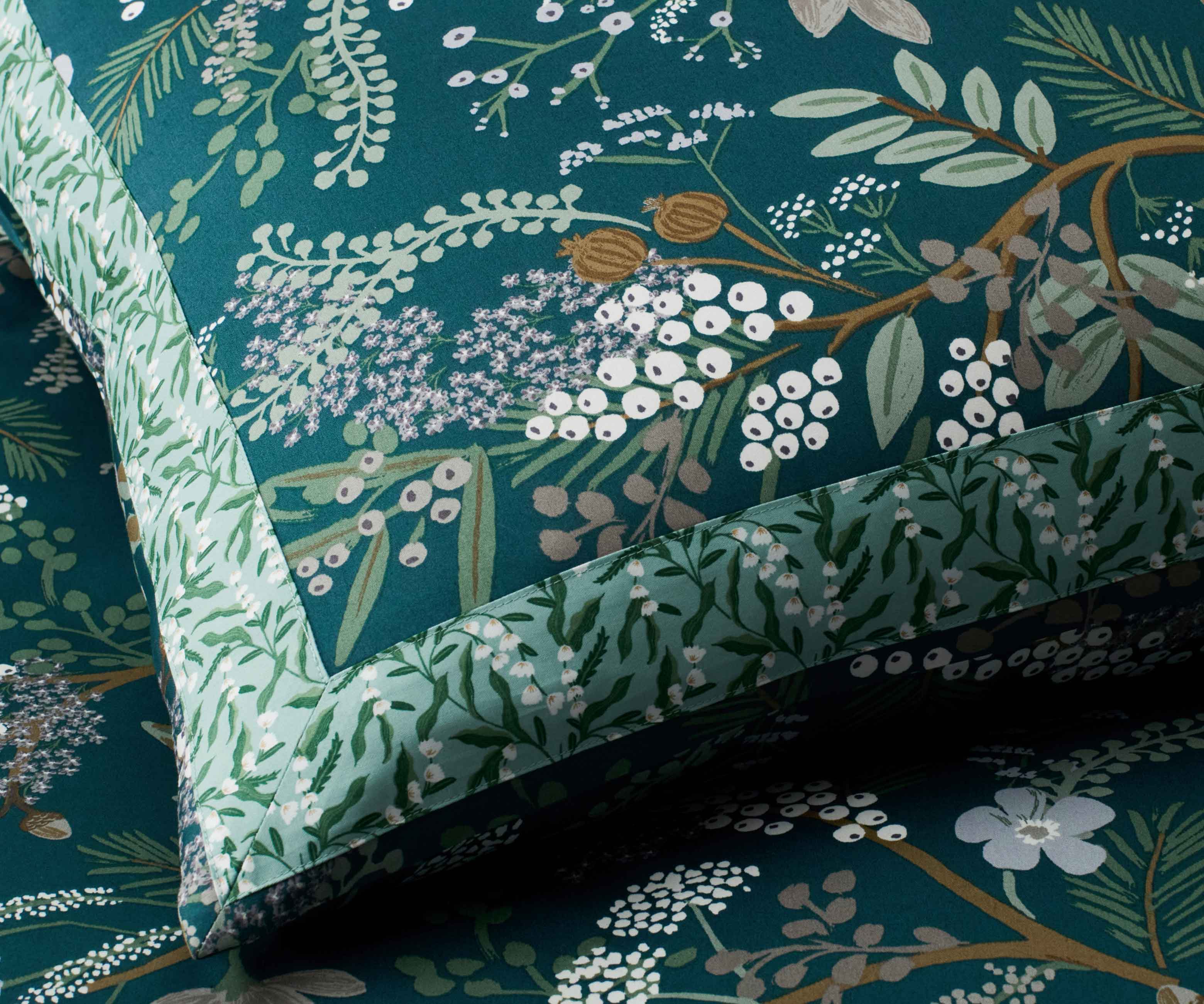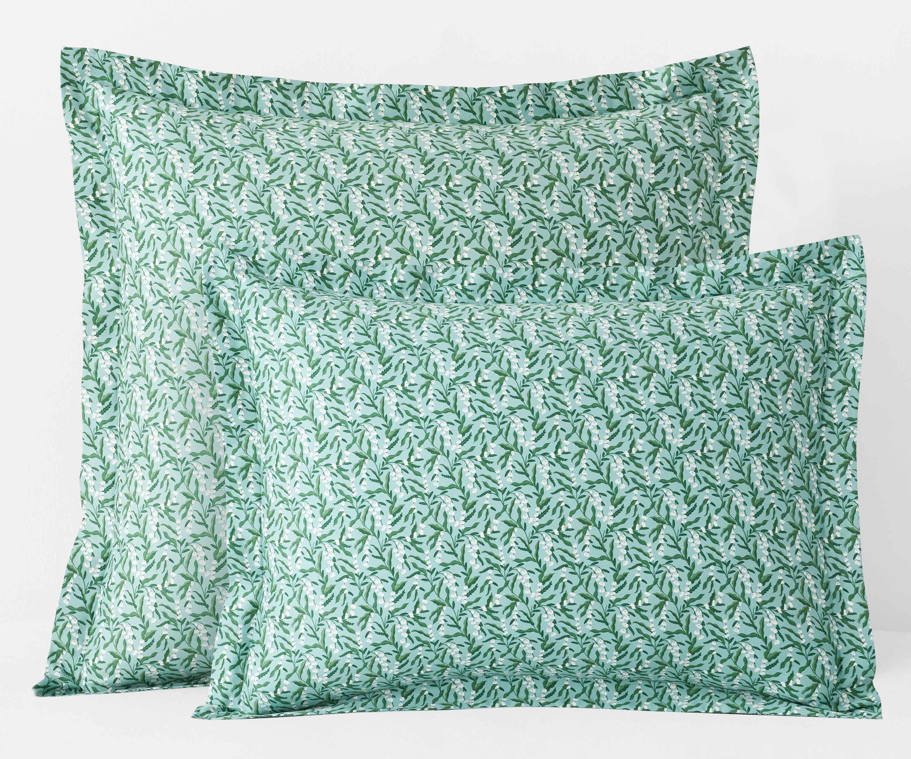 Our signature floral bedding is back in a new palette of serene tones of blue and green. Complete the look with a coordinating set of Hawthorne sheets in the same cool colors.