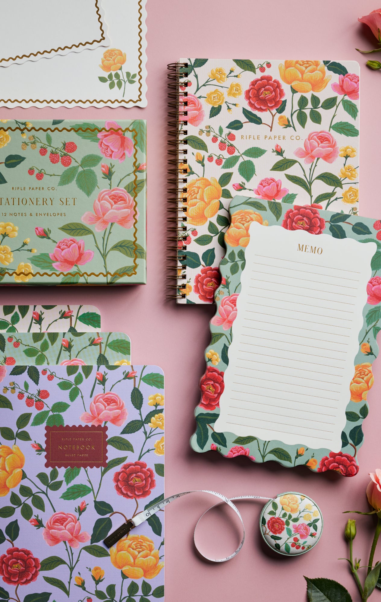 Our best-selling floral print is a joyful array of bright bouquets, lush greenery, and fruit. Like all of our designs, it started as an original gouache painting by Anna Bond and can now be found on products in every category, from greeting cards to wallpaper.